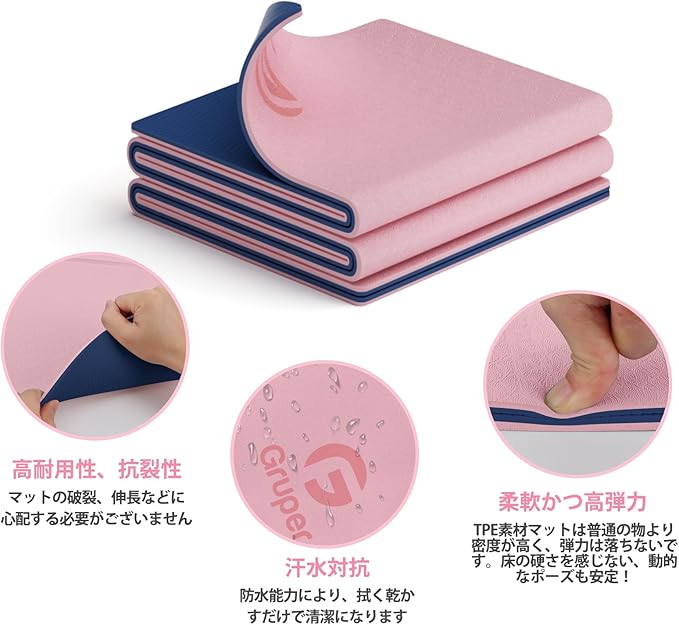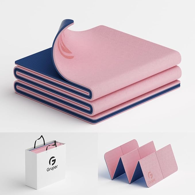Gruper ヨガマット 6mm 折りたたみヨガマット TPE エクササイズマット フィットネスマット トレーニングマットTPEリング保護素材 軽量 耐久性 肌に優しい 両面の滑り止 屋内運動 ピラティスマット持ち運び 収納簡単