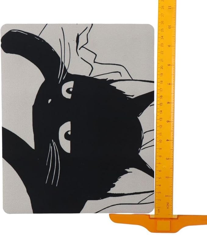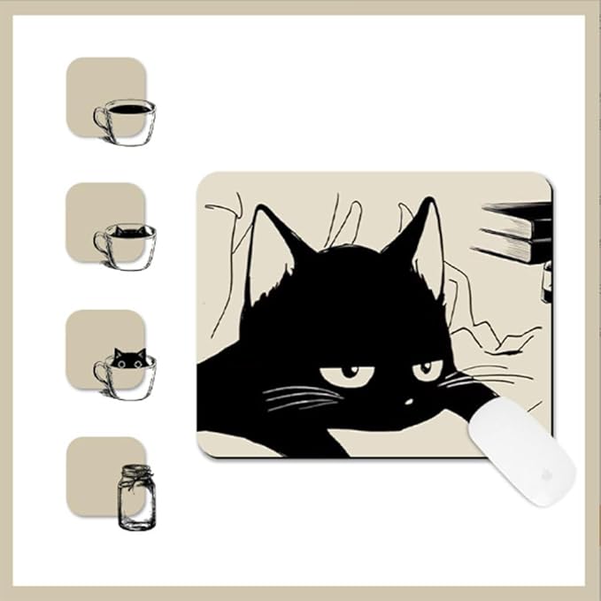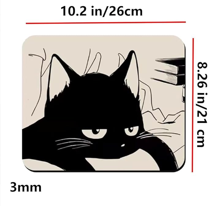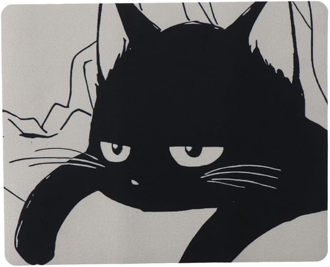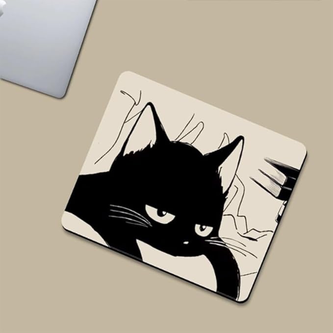 黒くて眠そうな猫のマウスパッド、かわいいアニメ オフィスコンピュータ 滑り止めゴムベース