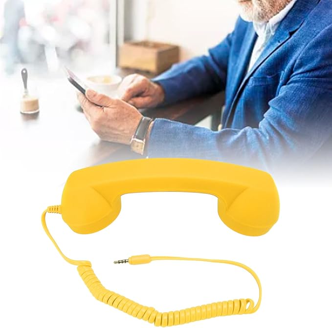 Acogedor 携帯電話用レトロ電話受話器 高性能な音質 3.5mmスマホプラグ付き フレキシブルな9フィートコード 各種スマートフォンに対応 (黄色)