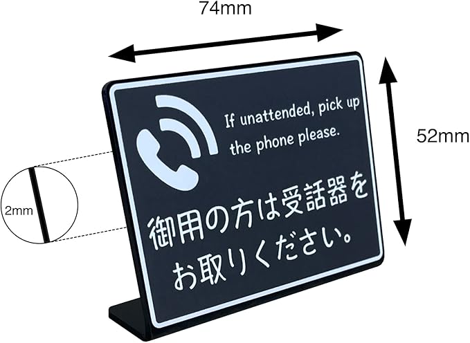 受付カウンター 卓上 プレート サイン | 御用の方は受話器をお取りください | サイズ: 74x52mm | 日本製