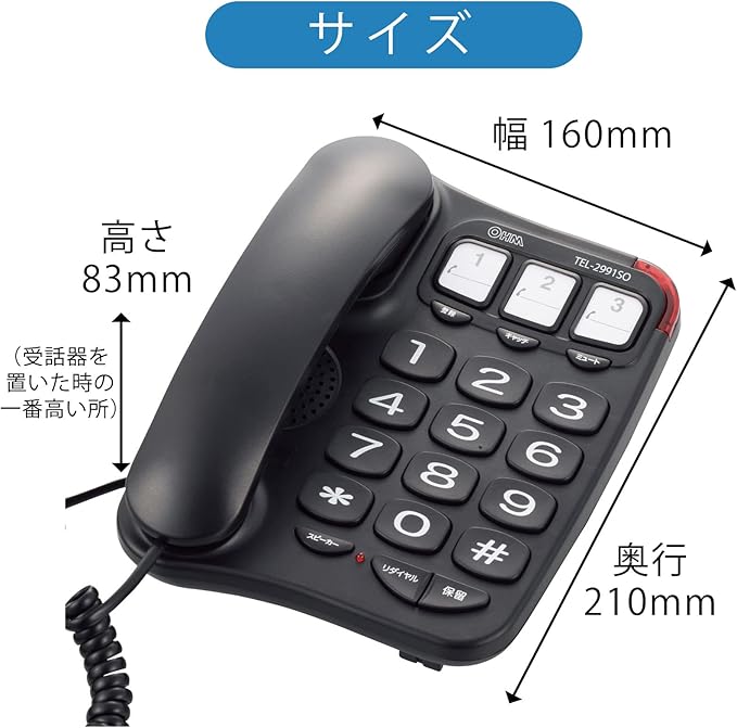 シンプルシニアホン ブラック_TEL-2991SO-K 05-2991