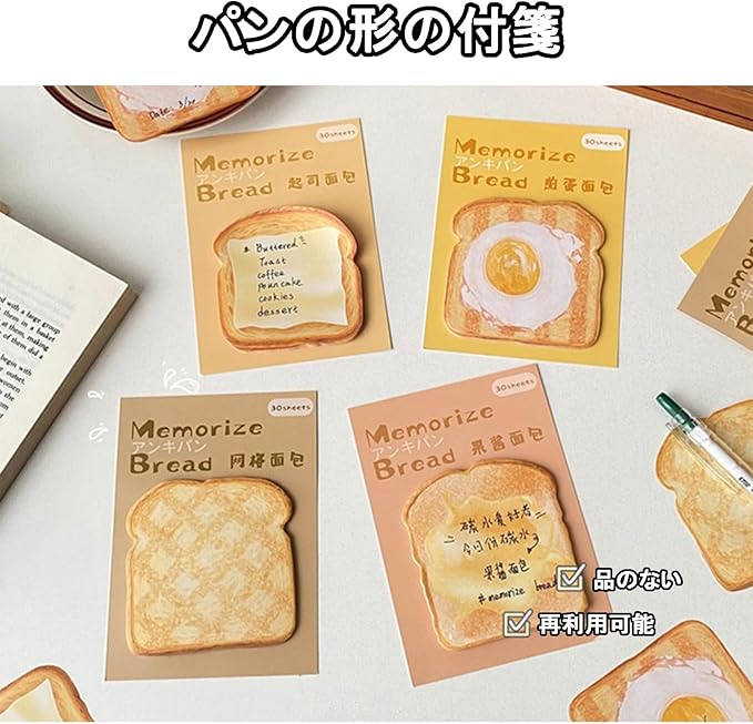 付箋 ポストイット 強粘着 4冊 ノートメモ用紙 見出し 付箋紙 使いやすい 文房具 オフィス メッセージシール 粘着メモ 事務用品 (パン-4冊)