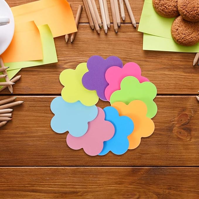 付箋 ハート 付箋 強粘着 1冊30枚入り 事務用品 手帳 カラフルなメモ用紙 メモ帳 インクが浸透しにくい 簡単に裂ける 何度も貼り直し 便利文房具-7*7||花形8冊セット