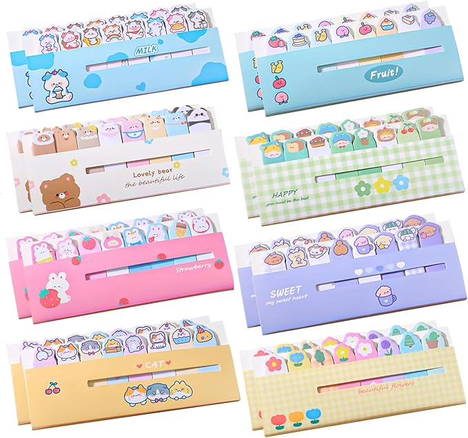16種類X120枚 かわいい 付箋, BetterJonny 動物 しょくぶつ 大集合 DIYメモ帳 紙の便箋 付箋 ひょっこりミニセルフスティックインデックスタブ、学生のためのカラフルなダーリング動物グループマーカータブ ホームオフィスギフトタブ供給、8スタイル、1920枚セット
