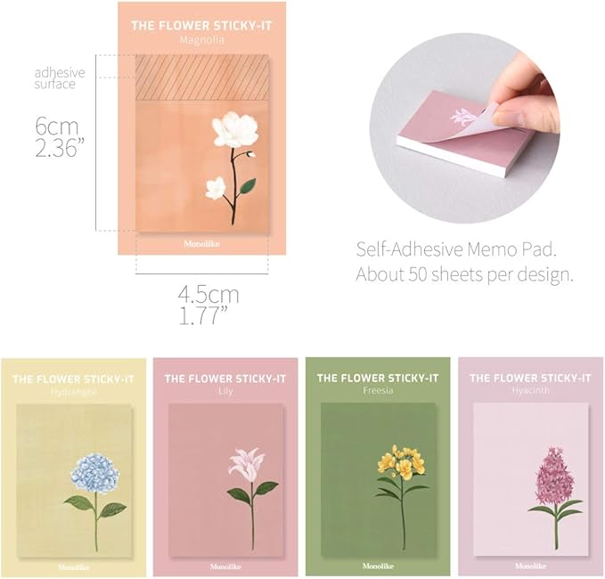 モノライクザフラワー5セットThe flower Sticky-it - 5セット粘着メモ用紙 50シートお互い違うデザイン5種セット