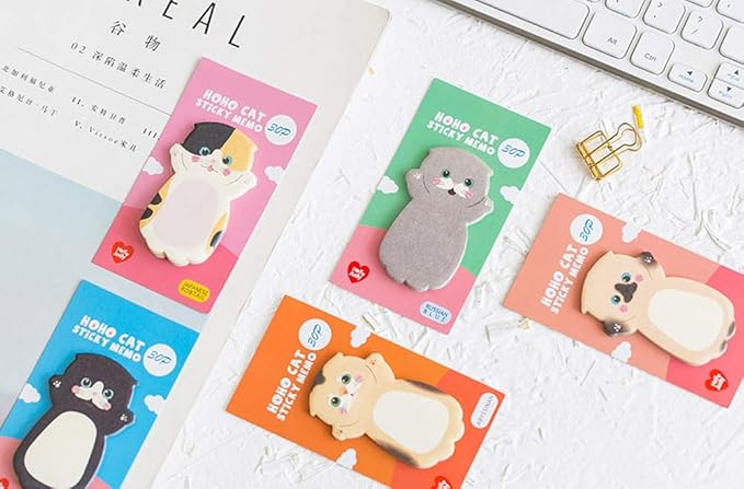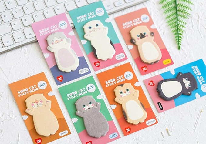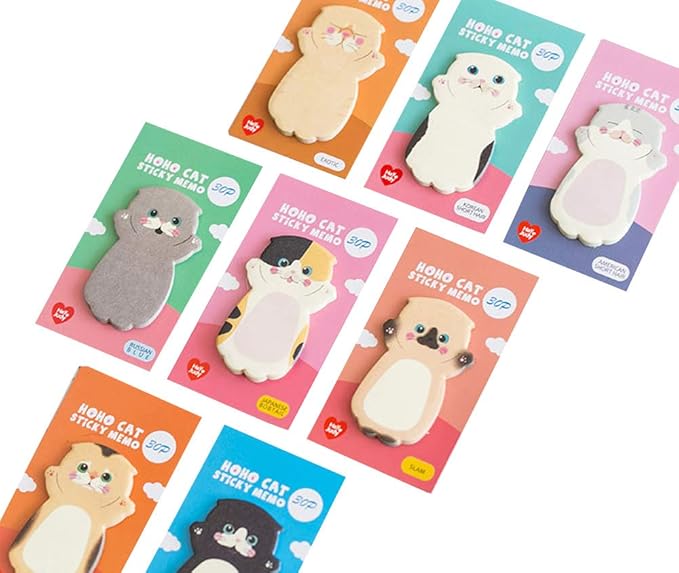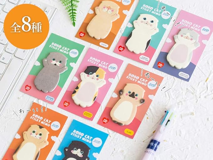 moin moin 付箋 ふせん メモ わーい! ポーズの 猫 ねこ 8種セット (ロシアンブルー/アメリカンショートヘア/三毛猫/タキシード など) 1810po79