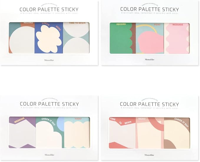 モノライク カラーパレットスチーキ オブジェ 300 A Color palette Sticky Objet セット 4p - デザイン1個あたり30シート、粘着メモ
