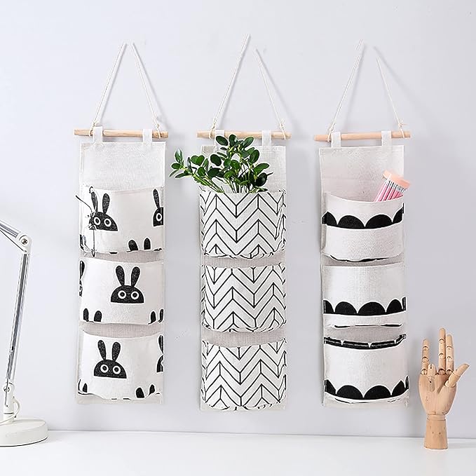 【パッケージ付属】各ハンギングバッグに3つのポケットが付いた2つの壁収納バッグ。性別を問わず、収納バッグはとてもかわいいです。美しいバッグは小物だけでなく、デコレーションにも使えます。