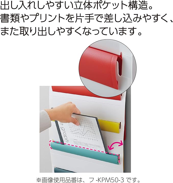 コクヨ(KOKUYO) ウォールポケット 壁掛け 収納 さっと出し入れできる 書類用 5ポケット マルチカラー フ-KPM50-3