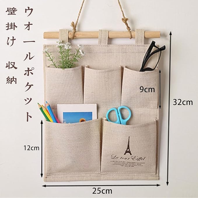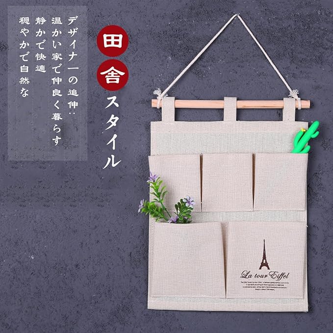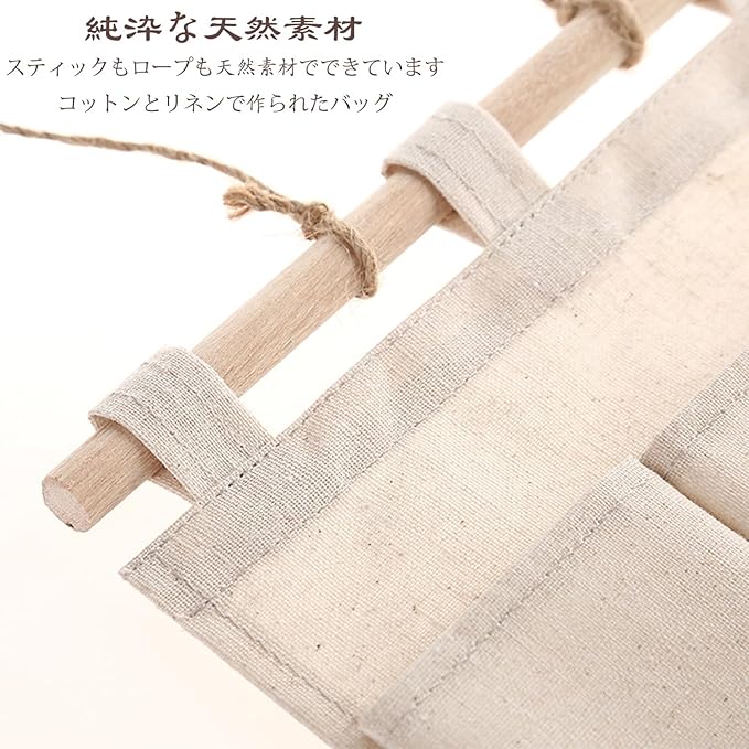 【おしゃれなデザイン】天然素材の麻がナチュラルでやさしいウォールポケットです。シンプルなデザイン、お部屋の雰囲気がよく合えます。 5つのポケットがあり収納力も抜群です。木の棒と綿ロープの組み合わせは環境に優しく実用的で、家庭生活の良い装飾にもなります