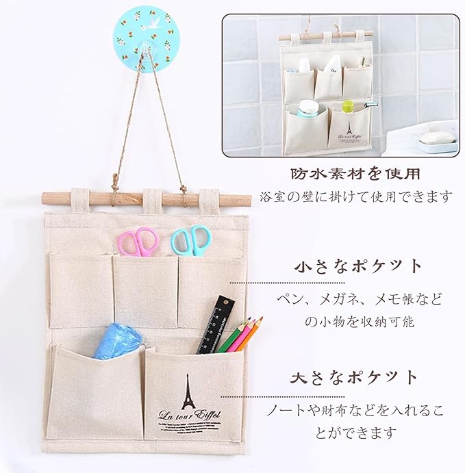 【小物収納】壁掛け 収納、マルチポケットデザイン、リモコン、櫛、鍵、傘などの小物がすべて収納されており、内側の防水PEフィルムが中のアイテムをよりよく保護します、バッグ。小物の分類に便利で、散らかったものもお好みに合わせて整理整頓できます