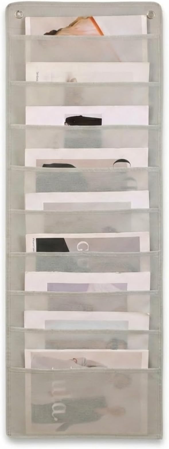ウォールポケット 壁掛け 収納 【選べる6段/9段】 A4 メッシュ 吊り下げ 複数サイズ 書類 雑誌 新聞 レターラック クローゼット 下着 小物入れ 隙間 省スペース 洗える (グレー / 9ポケット)