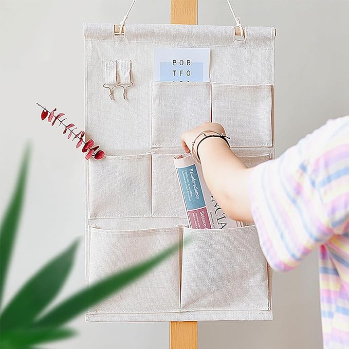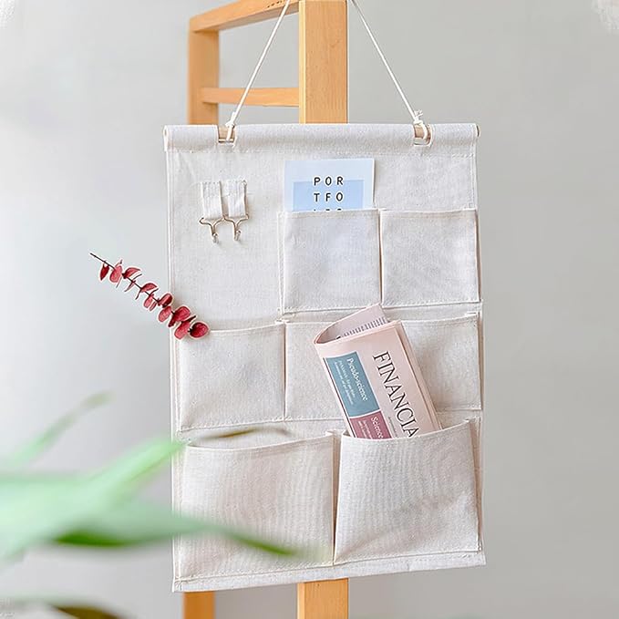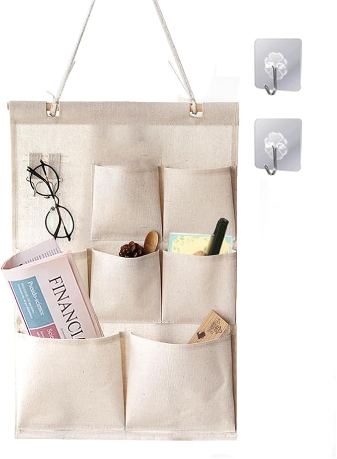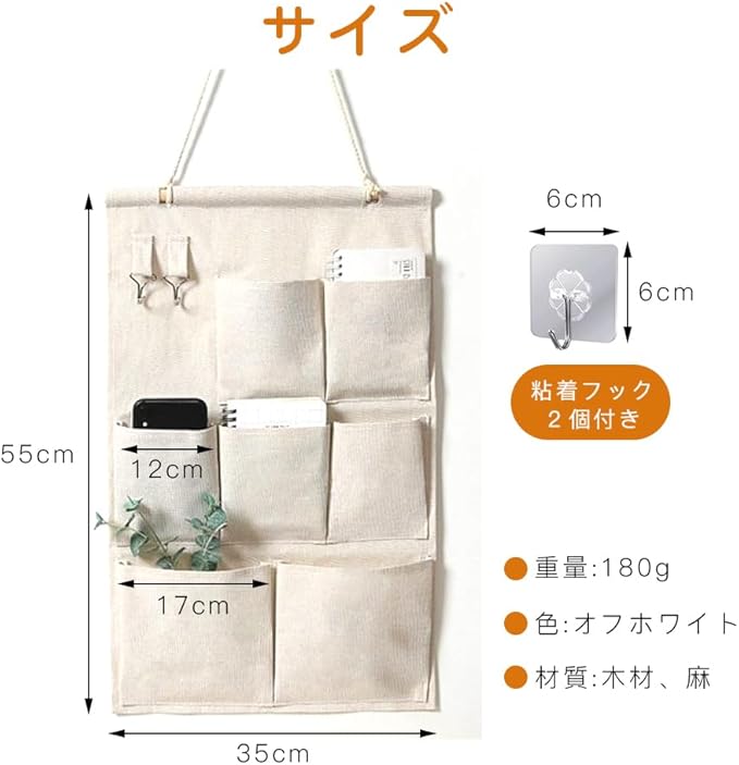 【多用途な収納設計】3段7ポケットの多機能収納で、郵便物や文房具、小物をすっきり整理できます。上段のフック付きで、鍵やアクセサリーも便利に収納可能。