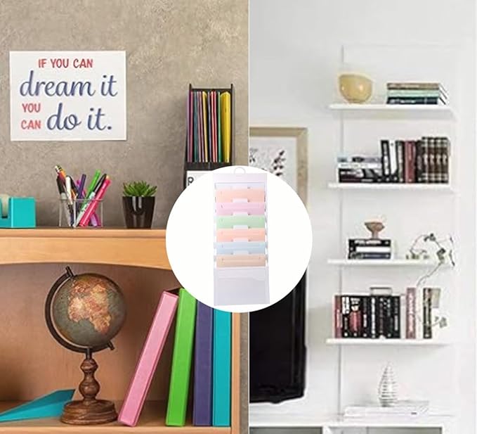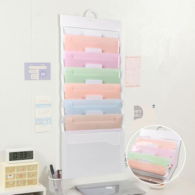 多彩な収納力:ウォールポケット A4サイズの書類や様々な事務用品を効率的に整理できるよう設計された、6つの広々としたポケットを備えています。
