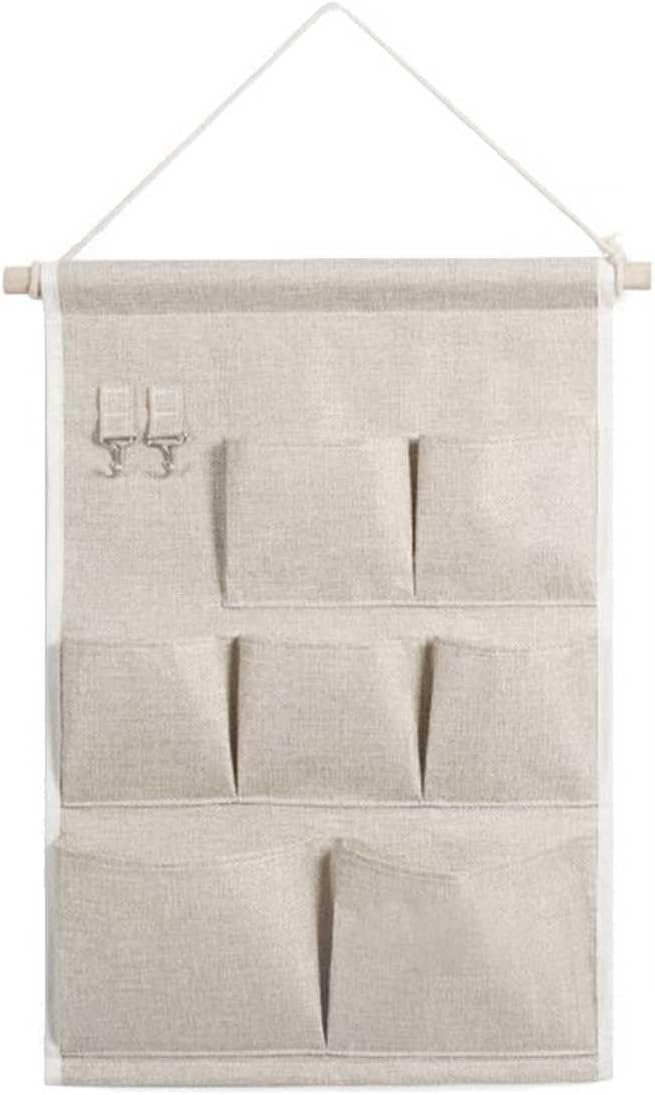 【RFHUDJI】ウォールバッグ壁掛け収納—天然素材ウォールラック、3段掛け7つのポケット、ドア掛け可能寝室玄関小物収納新聞雑志便箋手紙掛け鍵などたたむ収納整理分類玄関や寝室に最適です (ベージュ色です)