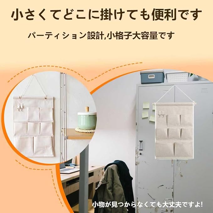 多機能な収納: 3層7つのポケットを備え、郵便物や文具、小物を整然と収納できます。上部には鍵やアクセサリーを掛けるためのフックも付いています。
