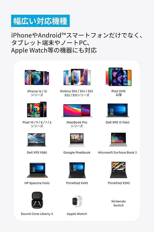 対応デバイス スマートウォッチ, タブレット, ノートパソコン, 携帯電話