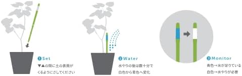 【使い方】 インジケーター(透明な部品の部分)を上にして、土に挿してください。 ▼ 三角マークの間に土がくるようにしてください。 ▲ 透明な部品の部分が、水やり後に青くなります。