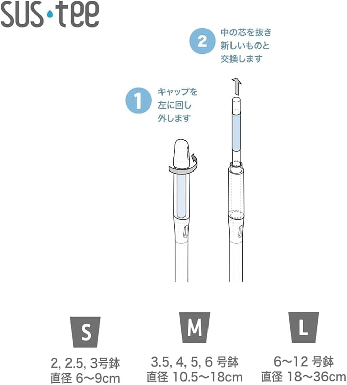 【特徴】 水やりのタイミングを色で教えてくれる、家庭用水やりチェッカー。 根が水を吸えているかどうかを測るpFメーターの原理を採用し、どのような土や環境でも、様々な植物にも使えます。 日本製で世界各国数々の賞を受賞している、水やりを成功に導くアイテムです。 4~6号鉢に推奨。 幅1cm 奥行0.8cm 高さ18cm 重量5.9g