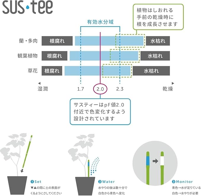 適切な水やりタイミングを「色の変化」でお知らせ!