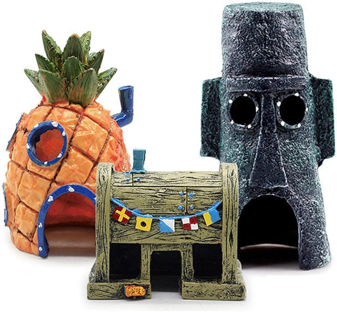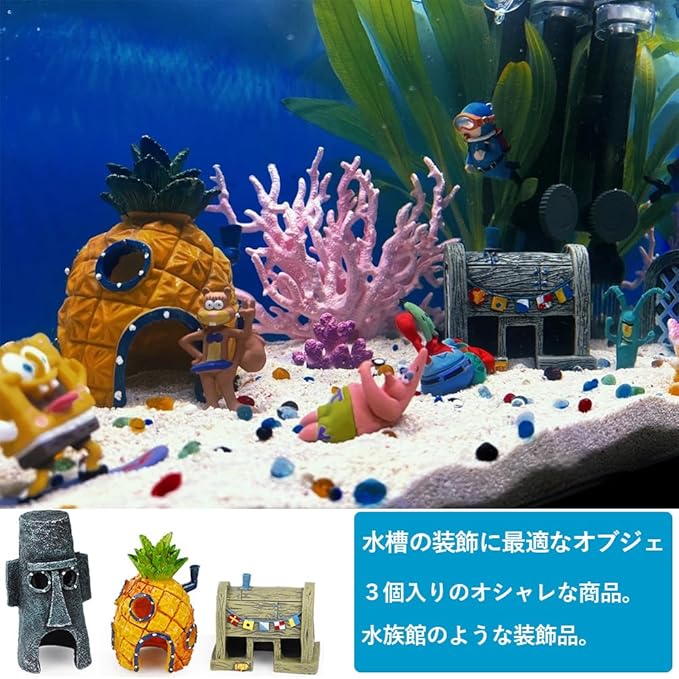 DFsucces アクアリウム パイナップルハウス イカルドの家 装飾 3点セット 水槽用アクセサリー 魚のおもちゃ DIY 雰囲気作り 安全性 耐久性