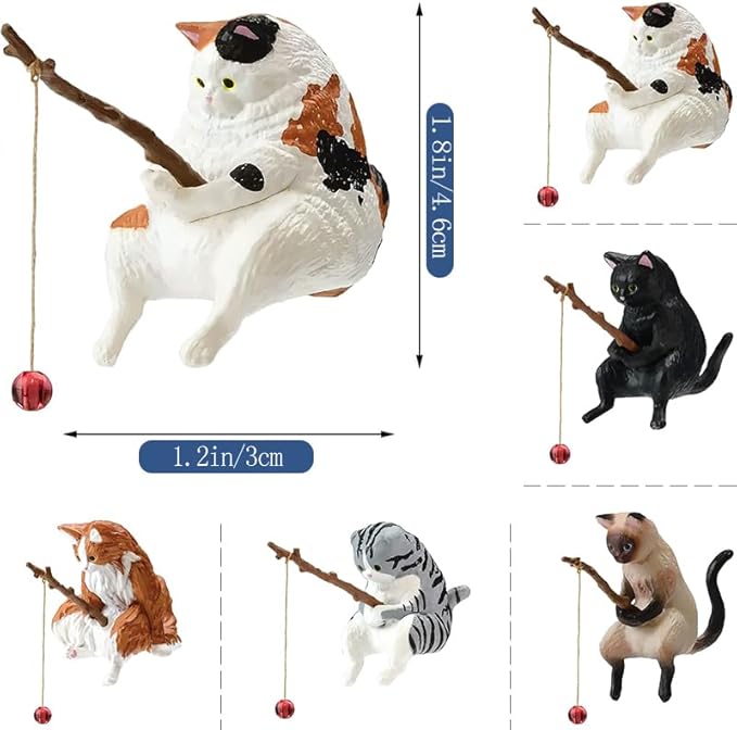 5個 釣り猫 置物 ミニ猫の像 水槽 オーナメント 子猫釣り置物 水槽造景 樹脂飾り 水槽用飾り 観賞 装飾品 水槽用アクセサリー 店舗飾り オブジェ 雰囲気を作る 家庭用 アクアリウム 用