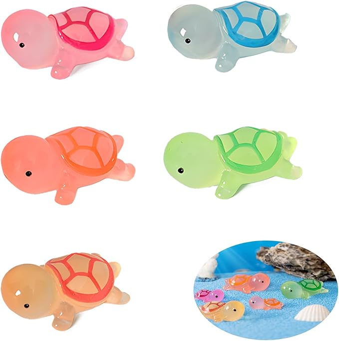 アクアリウム オブジェ【5個セット】ミニ リトルカメ装飾アクセサリー 水槽 飾り ミニチュア水槽 インテリア 水槽 おもちゃ 夜光 可愛い 樹脂 (ローズレッド、ブルー、オレンジ、イエロー、グリーン)