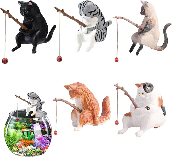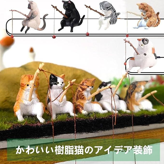 【独特で可愛いデザイン】各釣り猫は異なるポーズと表情を持ち、小さな釣り竿を持ち、集中した表情がかわいい!細かい手描き塗装と鮮やかな色彩で猫のフィギュアを生き生きと表現。家、オフィス、水槽のどこに置いても注目ポイントになり、おしゃれな雰囲気を添えます。