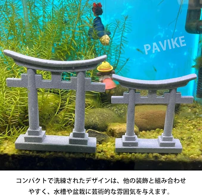 PAVIKE ミニチュア 神社 2個セット ミニチュア 神社 ゲート 水槽 アクセサリー 神社 かみさまのたな鳥居 アクアリウム オブジェ 和風 水槽の置物 アンティーク ガーデン 水族館 水槽 庭 アクセサリー(2サイズ)