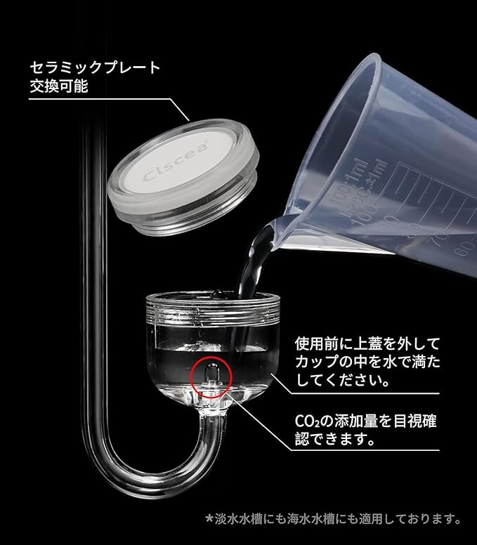 【細かくてCO2の節約】:Clscea製の高密度セラミックですので、市販の拡散プレートと比べるとCO2溶解効率がもっと高いです。