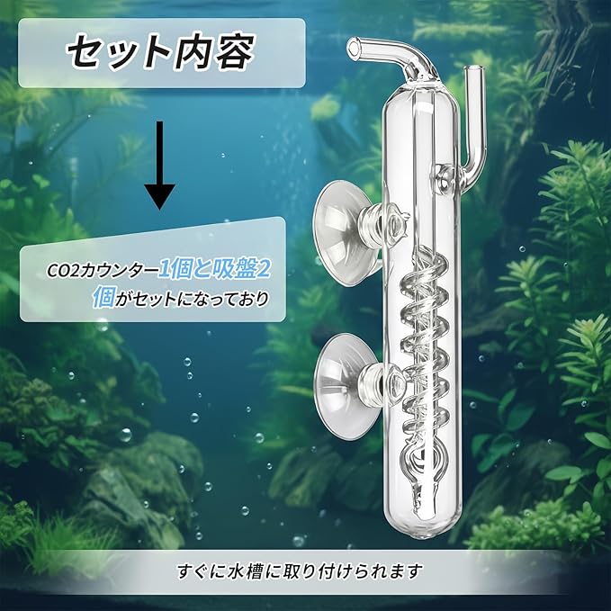 【セット内容】CO2カウンター1個と吸盤2個がセットになっており、すぐに水槽に取り付けられます。
