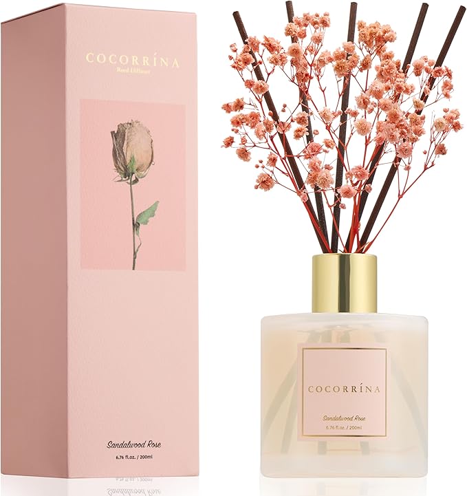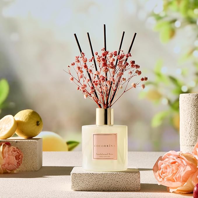 COCORR NA ディフューザー サンダルウッドローズ 200ml 約3ヶ月分ルームフレグランス 持続型 玄関 寝室 リビング用 芳香剤 ギフト プレゼント