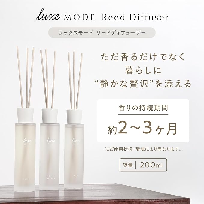 [luxe MODE] リードディフューザー 200ml 約2-3ヶ月持続 ルームフレグランス アロマディフューザー 芳香剤 おしゃれ インテリア ギフト プレゼント 部屋 玄関 ムスク smilemode スマイルモード【SAVON サボン】