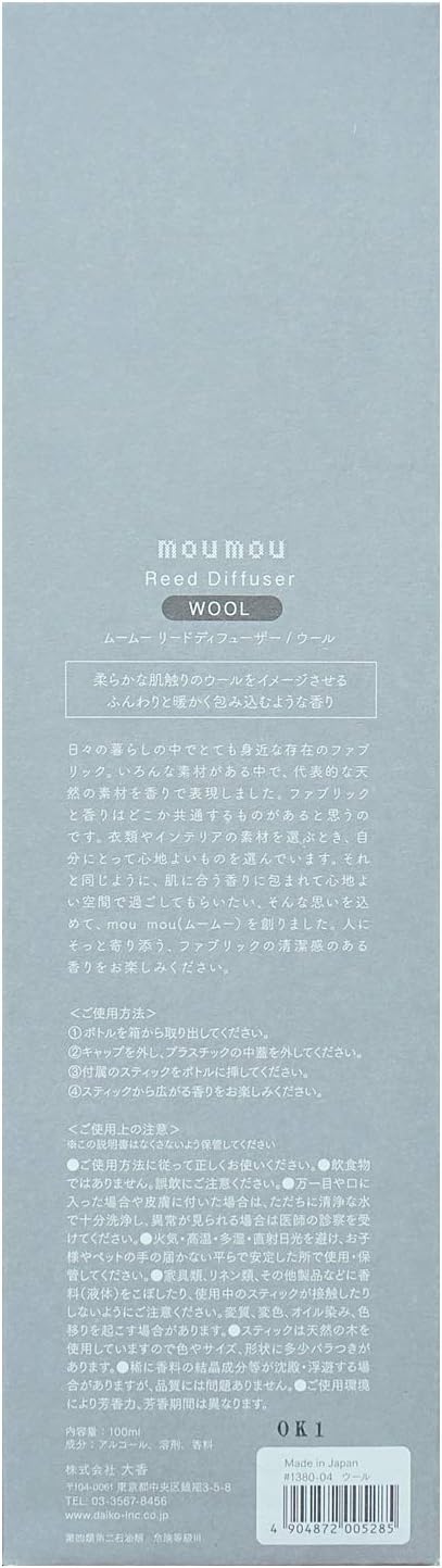 moumou(ムームー)リードディフューザーウール(暖かく包み込むような香り)100ml