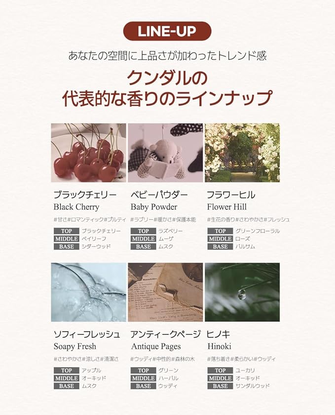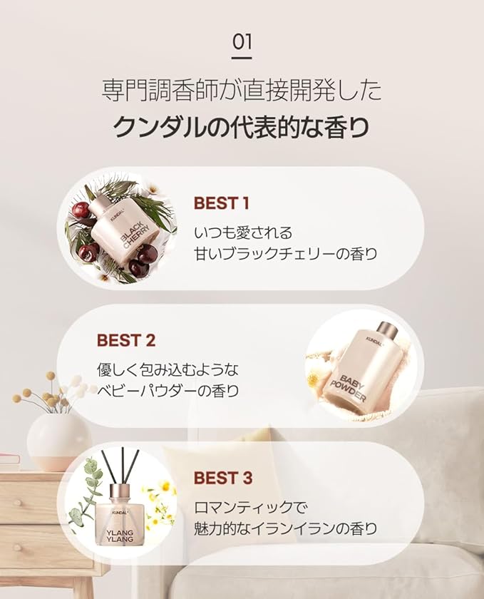 【パフュームディフューザー】クンダルの専門調香師が開発したオリジナルフレグランスを楽しめる香り豊かな大容量ディフューザーです。