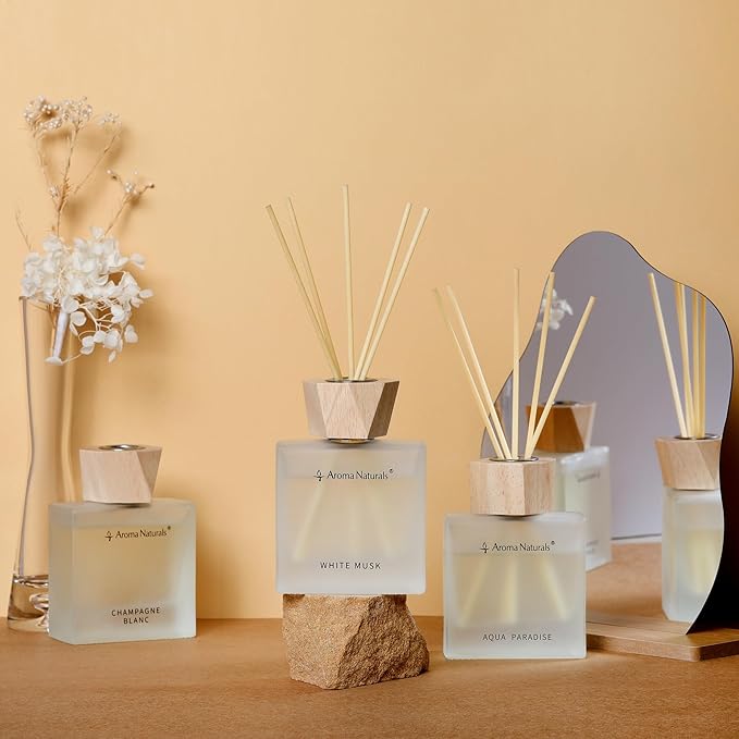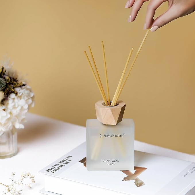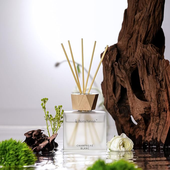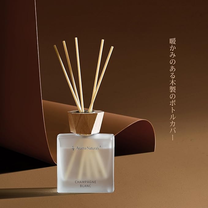 Aroma Naturals ルームフレグランス リードディフューザー グラスとリアルウッドが奏でる 芳香剤100ml(Champagne Blanc)