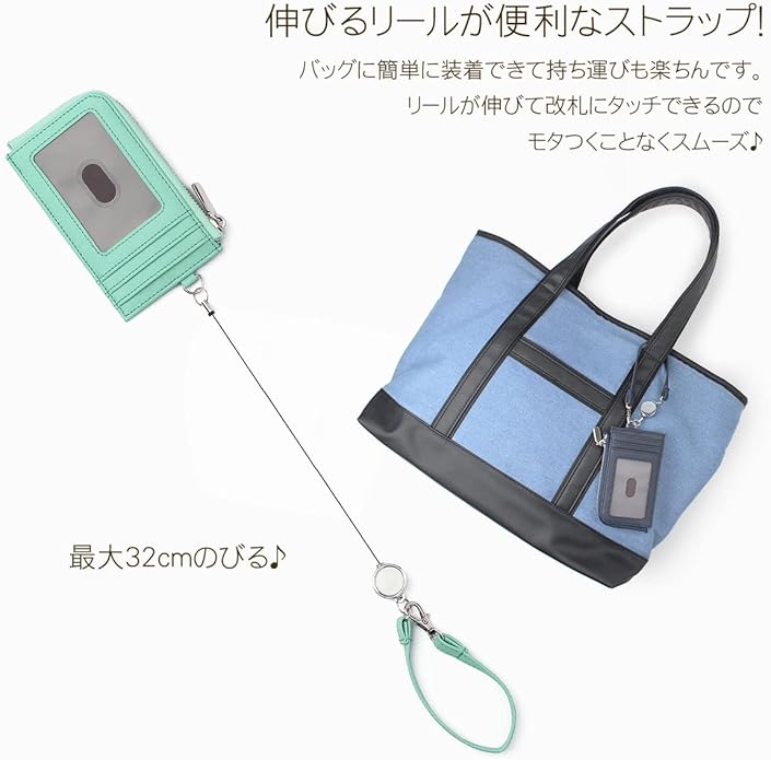 [ブランポム] リール パスケース レディース メンズ 定期入れ 小さい財布 ミニ財布 リールストラップ ストラップ 小銭入れ コインケース 小型 小さい コイン ケース bp-7001