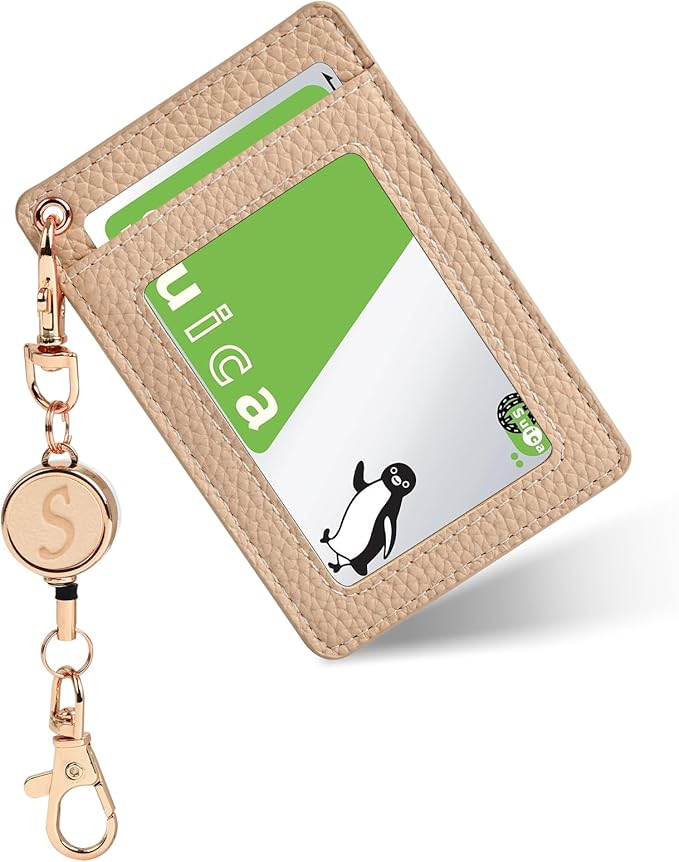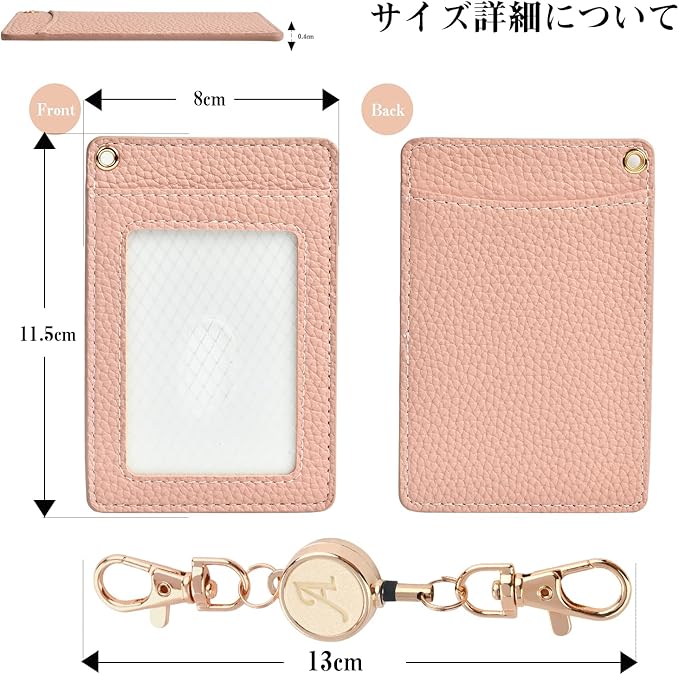 カードホルダー 縦型 パスケース レディース メンズ パスケース リール付き 定期入れ 両面収納かわいいリールナスカン付き 取り外し簡単 カード収納 通カード 通勤 通学 多機能-アプリコットS