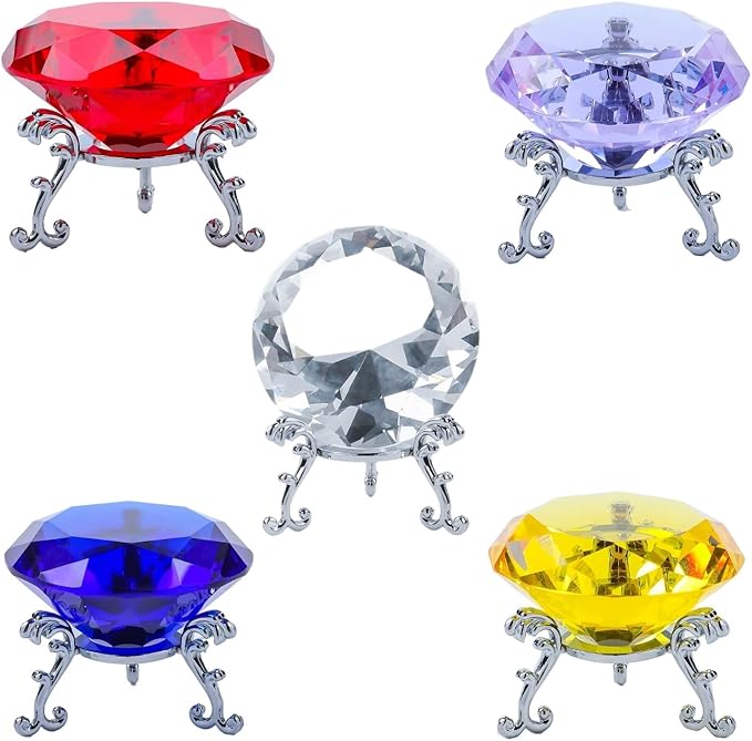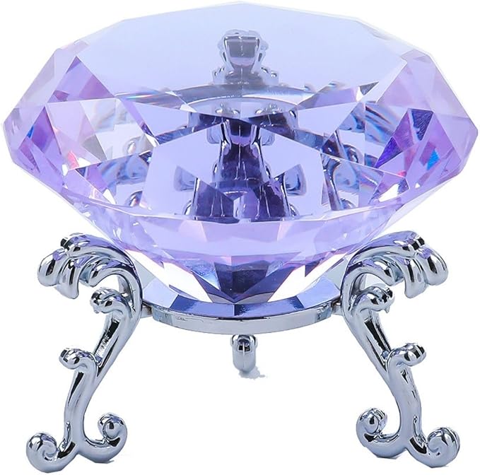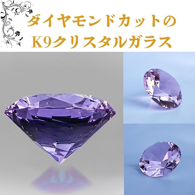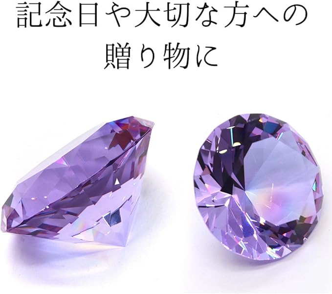 Shantia クリスタル 水晶 ダイヤモンドカット 60mm ペーパーウェイト 高品質 キラキラ 輝き 高い透明度 文鎮 装飾品 自分へのご褒美 多色透明(パープル 60mm 台座付き)