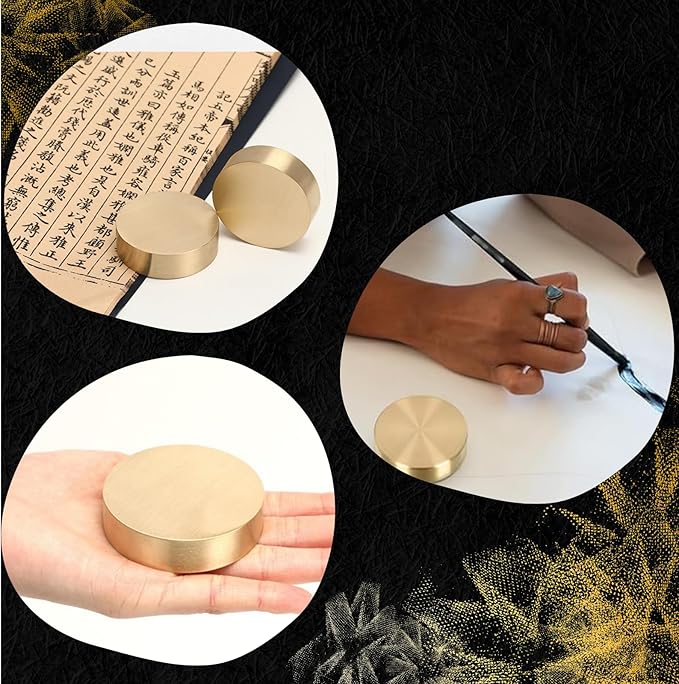 MagZen 真鍮 ペーパーウェイト 4cm 丸型 文鎮 書道 書き初め 習字 重り デスク用品 手芸 高級感