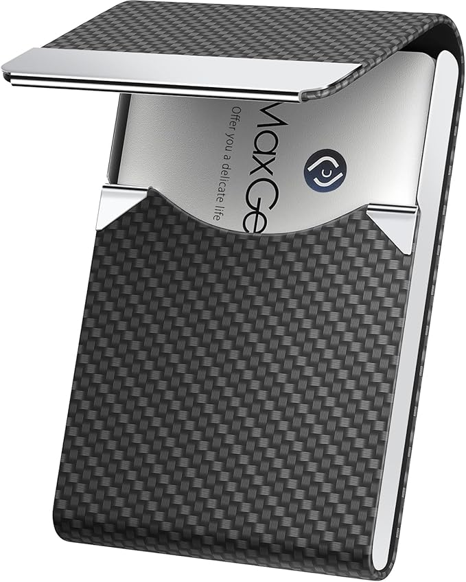 [MaxGear] 名刺入れ 取り出しやすい 名刺ケース 薄型 メンズ名刺入れ PUレザー カードホルダー マグネット式 1秒開閉 ビジネス用 RFIDブロッキング 男女兼用 カーボン