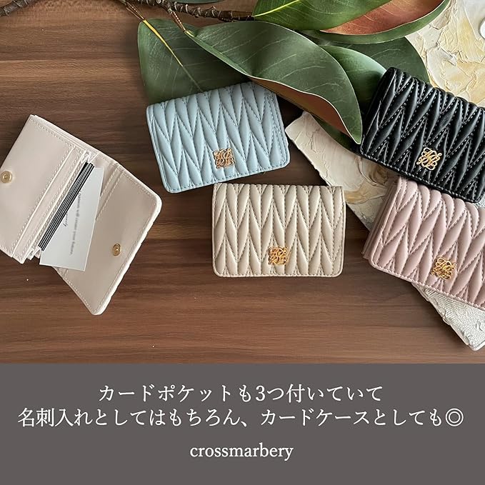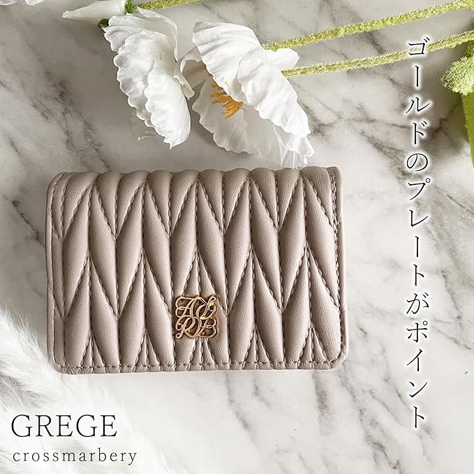 [クロスマーベリー] カードケース 名刺入れ レディース おしゃれ 可愛い キルティング ビジネス マグネット 仕切り 合皮 柔らかい 横型 軽量 シンプル レザー調 プレゼント R86 グレージュ