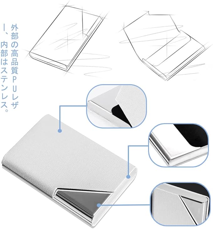 【材質】開閉はマグネットの式、外部の高品質PUレザー、内部はステンレス。