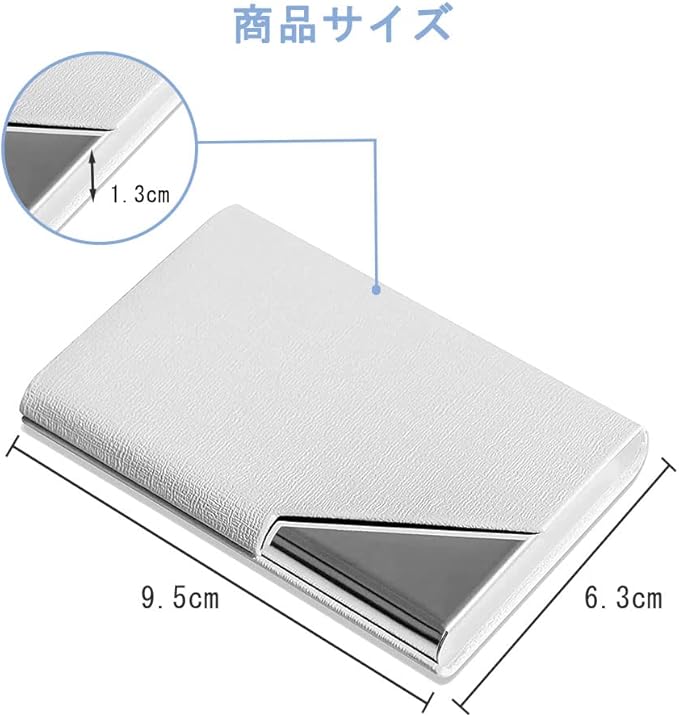【サイズと容量】9.5 6.3 1.3 cmの名刺入れで、名刺の厚さにより15~20枚ぐらいの名刺が受け入れ。