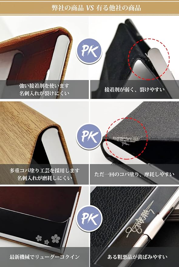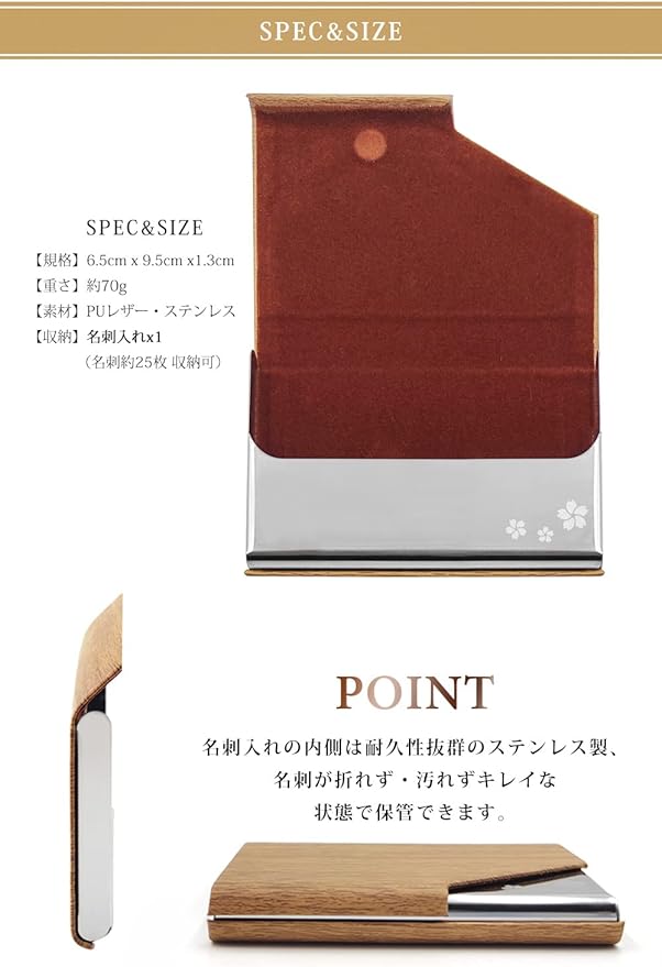 【折れる防止】名刺入れの内側は耐久性抜群のステンレス製、名刺が折れず・汚れずキレイな状態で保管できます。