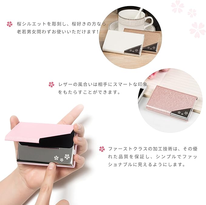 [Fukuhana] 名刺入れ メンズ レディース 合皮 薄型 選べる多色 名刺が折れない 専用の化粧箱が付き (桜さくら色)