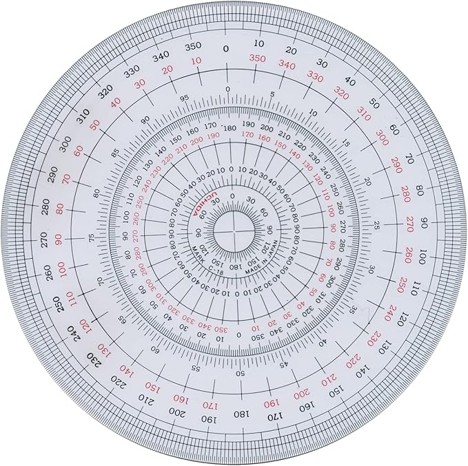 180度以上の角度を測るときに非常に便利な全円360度分度器。