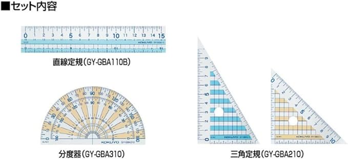 コクヨ 定規セット まなびすと 直線定規 三角定規 分度器セット 専用ケース付き GY-GBA501