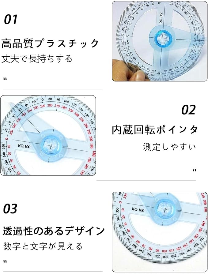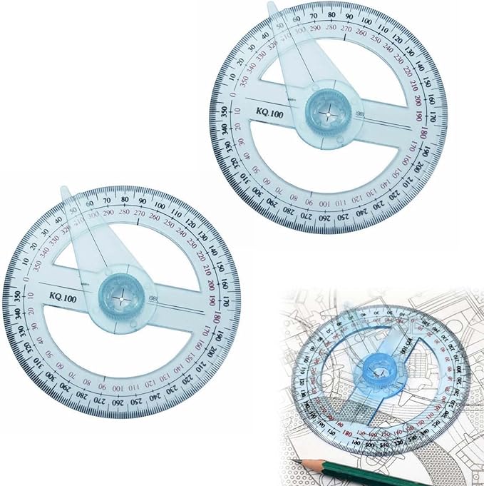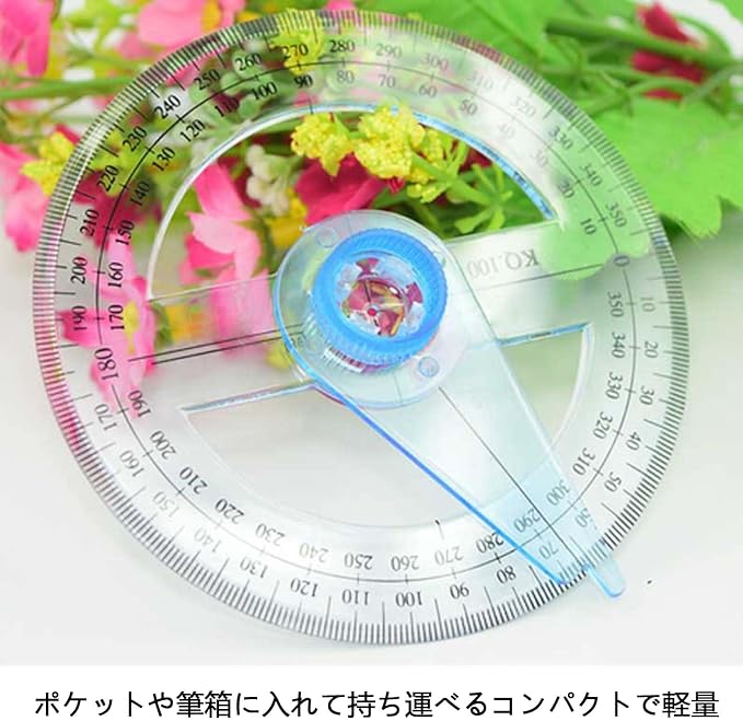 ✅【実用的で便利】分度器 コンパクトサイズで軽量、持ち運びや収納が簡単です。 内蔵の回転ポインターは360度回転させることができ、生徒の数学の角度の理解を助けるだけでなく、円や角度を簡単に描くことができます。