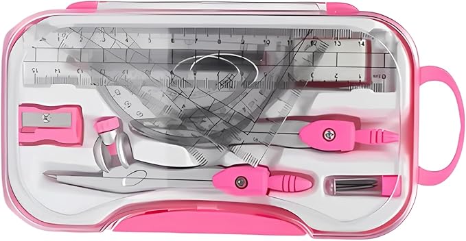 【先生と共同開発・中高生まで使える】分度器 コンパス 定規セット 三角定規 算数定規セット【安全に配慮した短針設計・軽くて丈夫なアルミ製】 (ピンク)